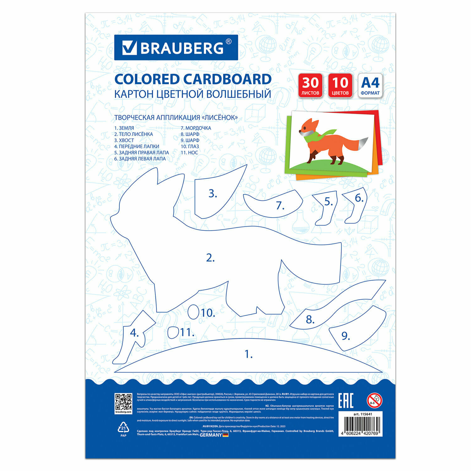 Купить Цветной картон для школы набор А4 матовый, 30 листов 10 цветов, канцелярия для школьников, для творчества, скрапбукинга, Brauberg Лисенок, 115641