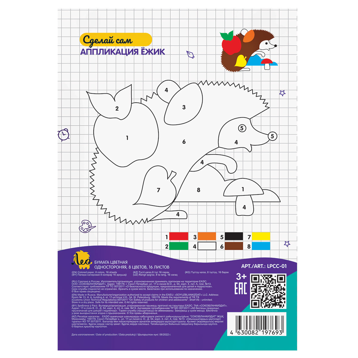 "Лео" "ШколаСад" Набор цветной бумаги, односторонняя, газетная LPCC-01 A4 19.5 х 27 см 16 л. 8 цв. . интересное: