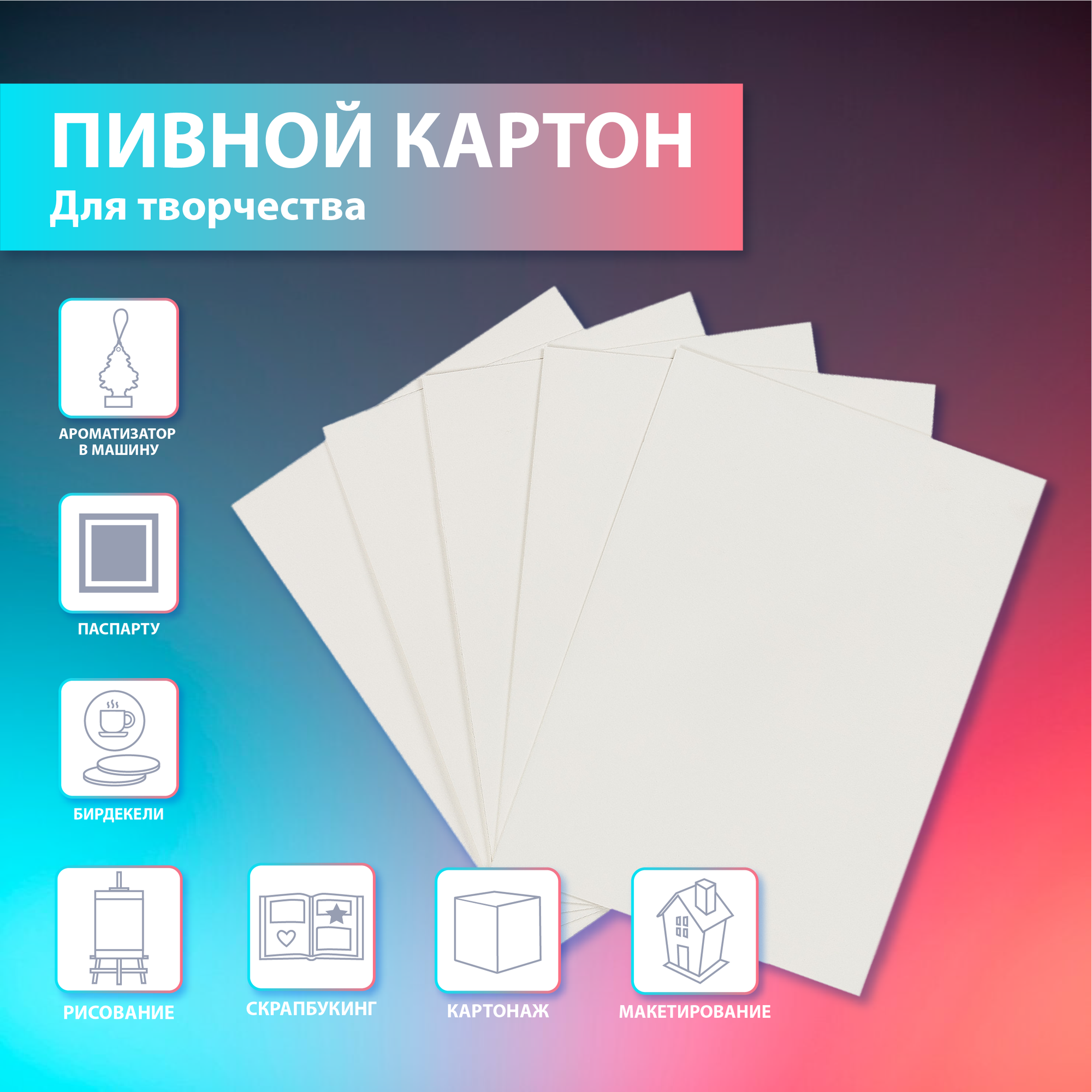 Картон пивной 5 листов 850 г/кв. м "Love2art" KLP-16K5 белый интересное: