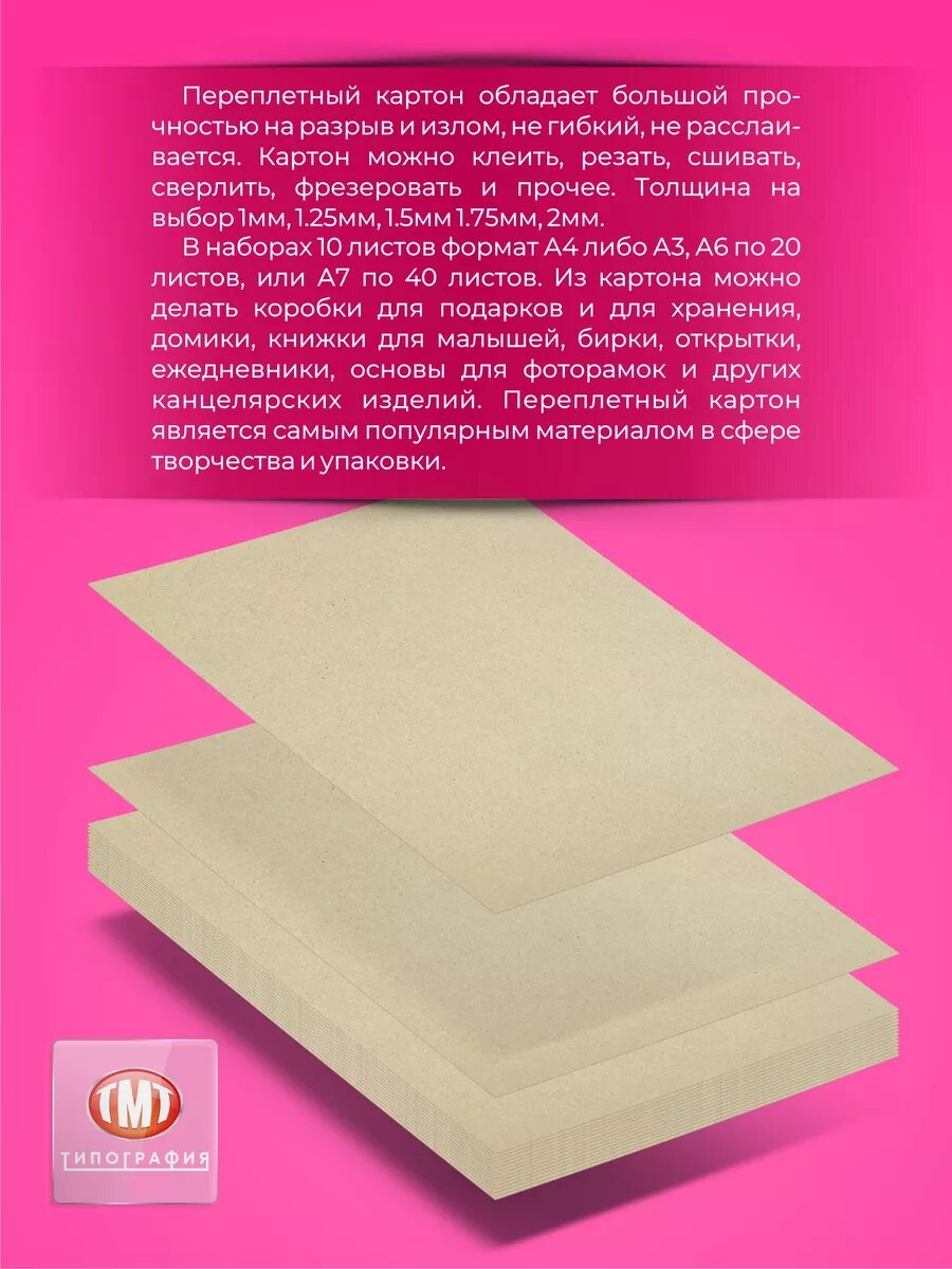 Переплетный картон "Типография ТМТ" 10 листов А3 толщина 1 мм