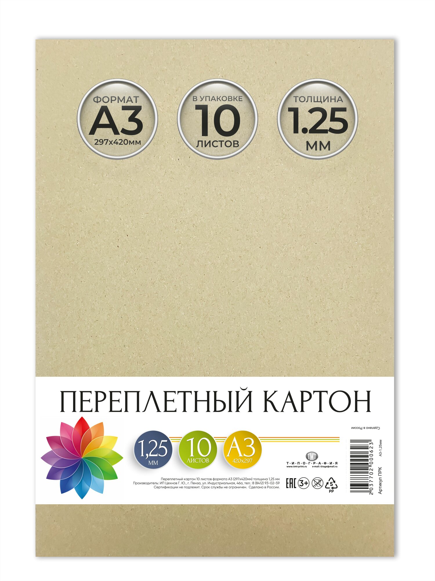Купить Переплетный картон от бренда "Типография ТМТ" 10 листов формат А3 толщина 1.25 мм