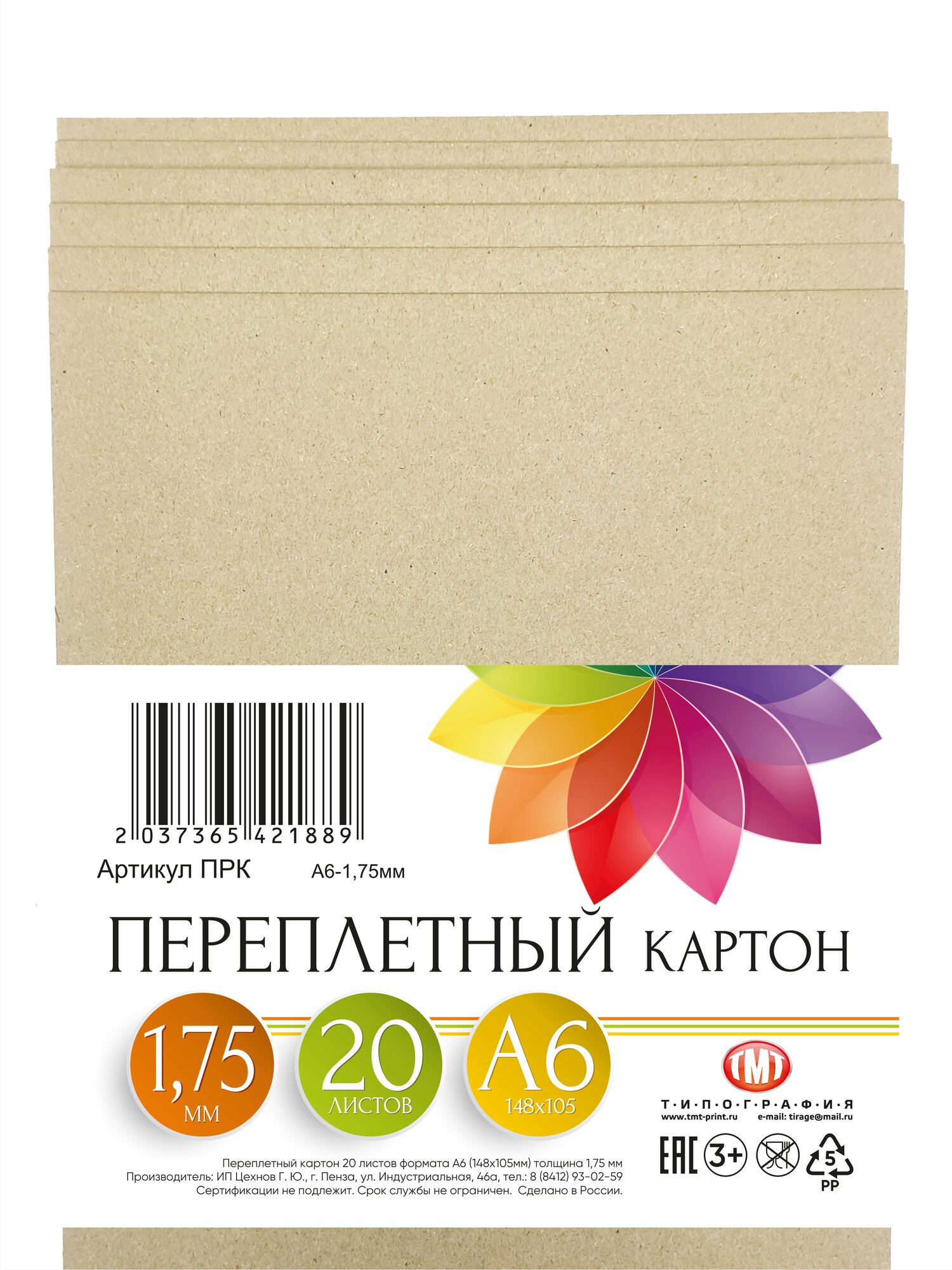 Переплетный картон от бренда Типография ТМТ 20 листов формат А6 толщина 1 мм