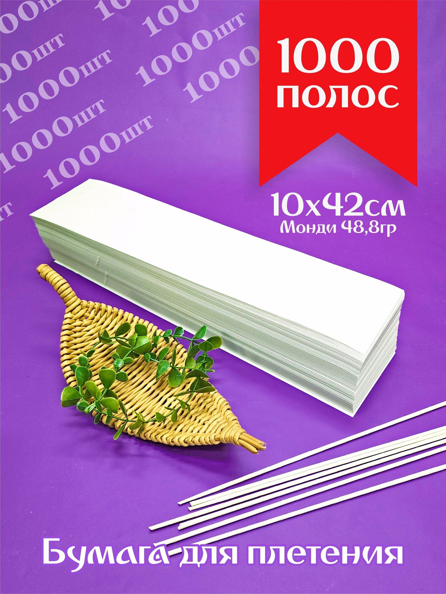 Газетная бумага для лозы / Монди 10х42см 1000 листов / бумага для плетения интересное: