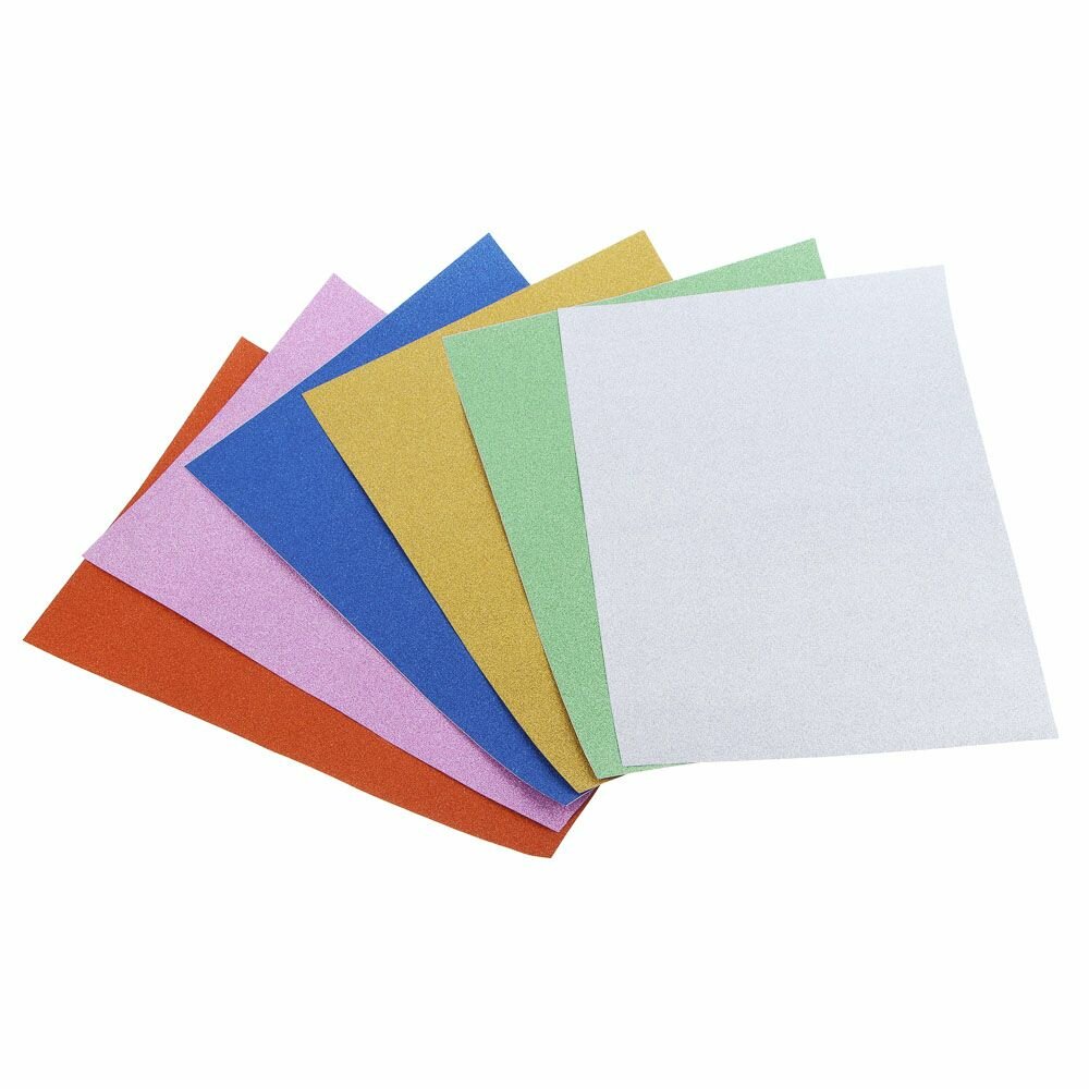 Купить Цветная бумага самоклеящаяся с глитером А4 для школы, 6 листов, FLOMIK
