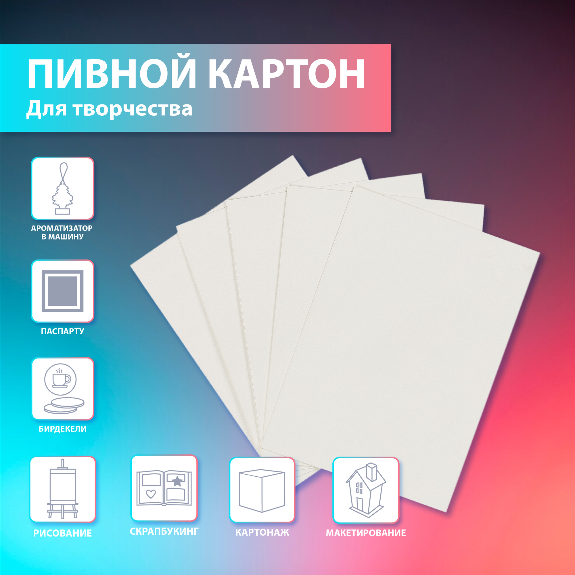 Картон пивной 5 листов 570 г/кв. м "Love2art" KLP-25K5 белый интересное: