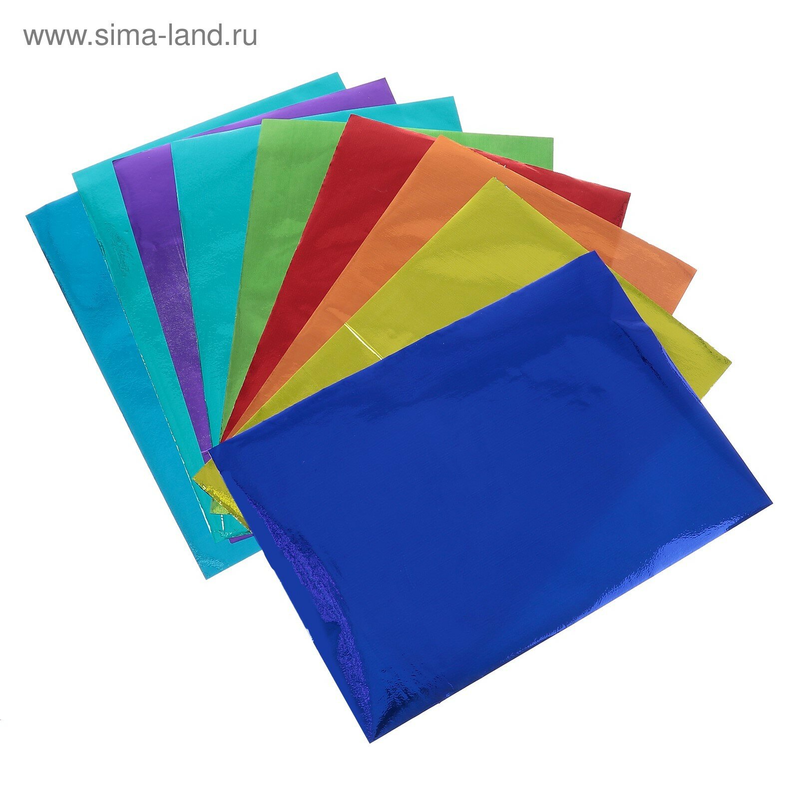 Набор Бумаги цветной самоклеящиеся (10 л металл фольга, 10 листов блёстки) А4 Calligrata. интересное: