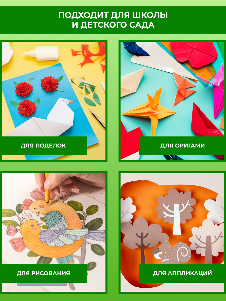 Цветная бумага двухсторонняя А4 AХLER, для школы и принтера, набор 120 листов (10 цветов x 10 листов + 20 белых) интересное: