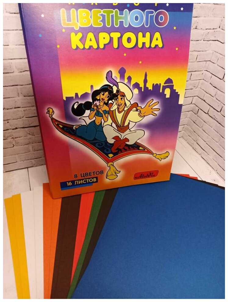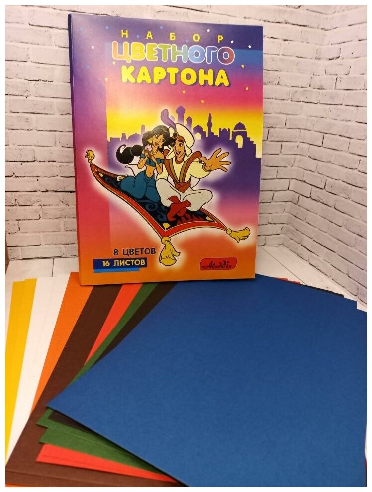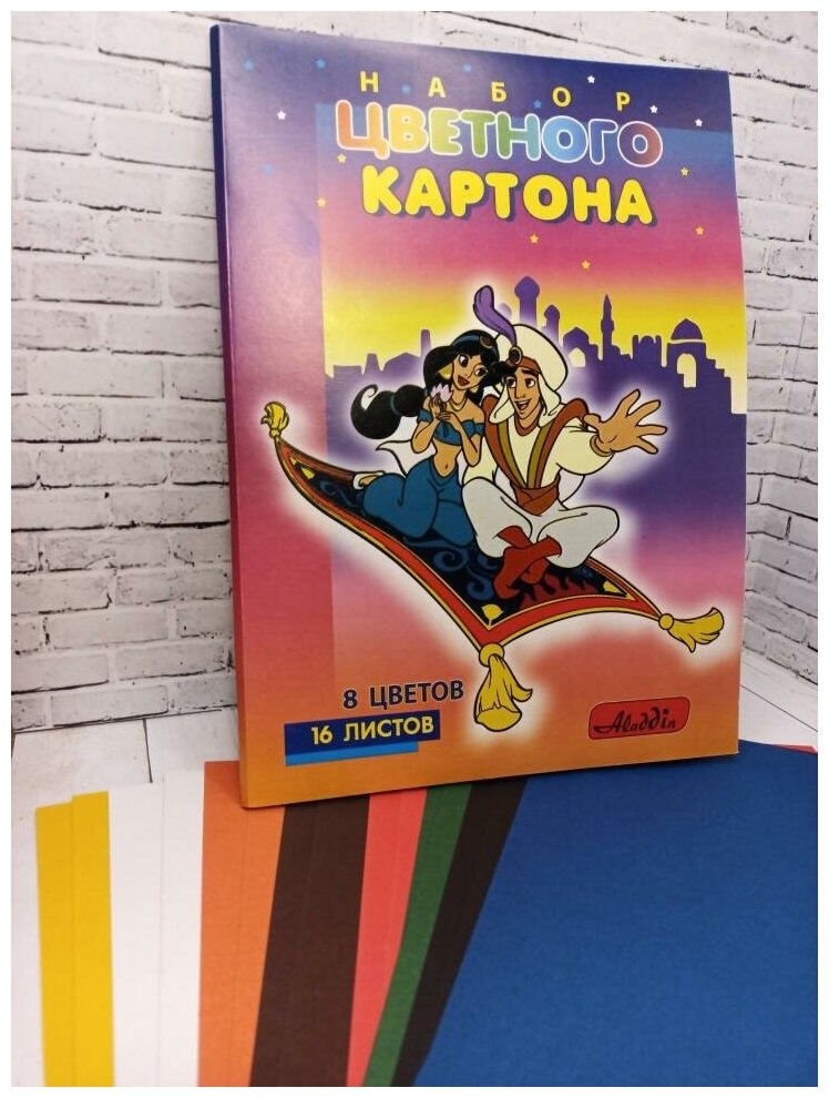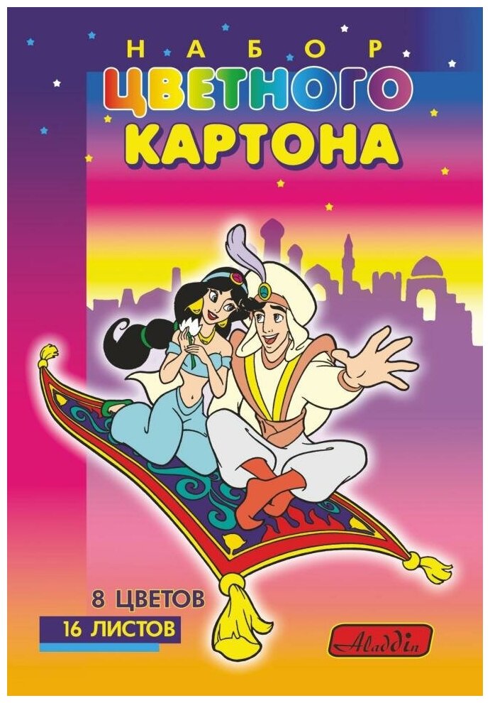 Картон цветной А4 односторонний. 8 цветов. 16 листов (Aladdin) интересное:
