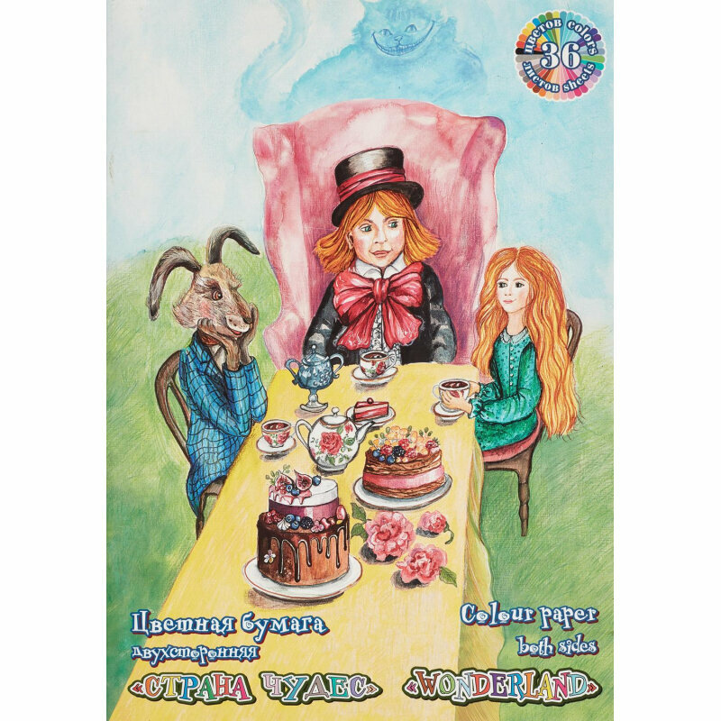 Бумага цветная А4 36л 36цв двухстор. Страна чудес Чаепитие ЦБ-3534 интересное:
