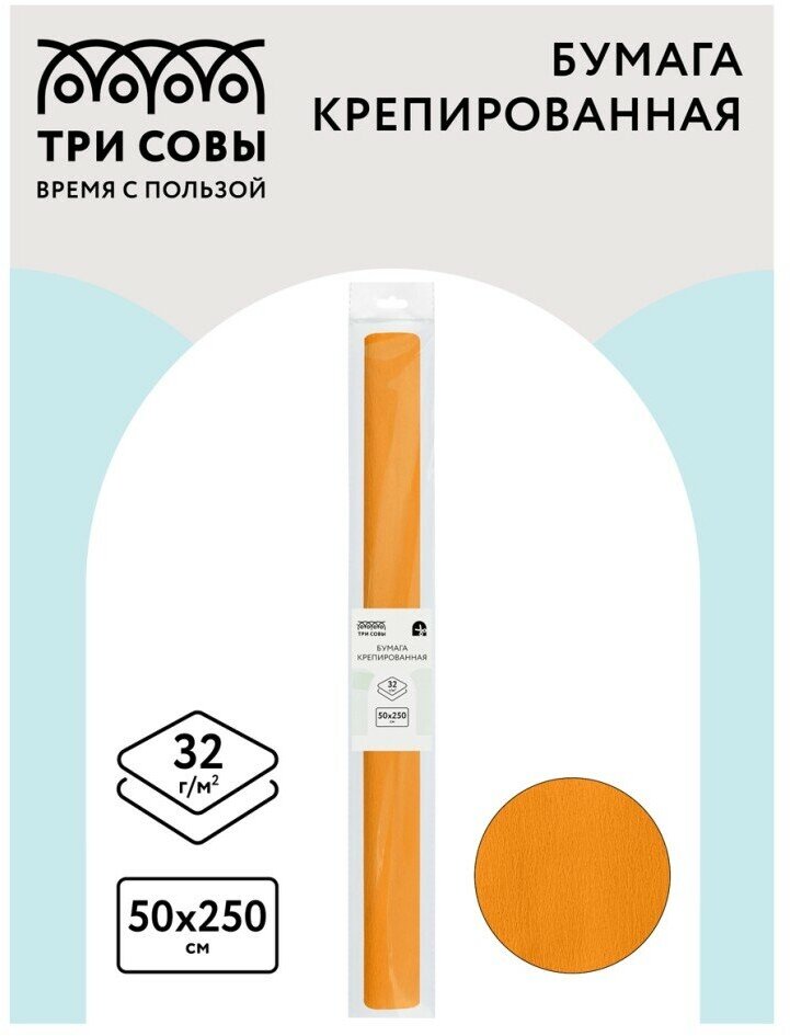 Бумага цветная крепированная Три Совы, 50x250см, 32 г/кв. м, оранжевая, в рулоне (CR_43955), 10шт.
