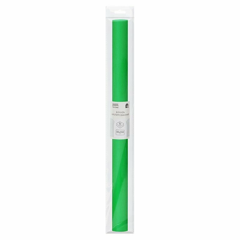 Бумага крепированная ТРИ совы, 50*250см, 32г/м2, зеленое яблоко, в рулоне, пакет с европодвесом 334858