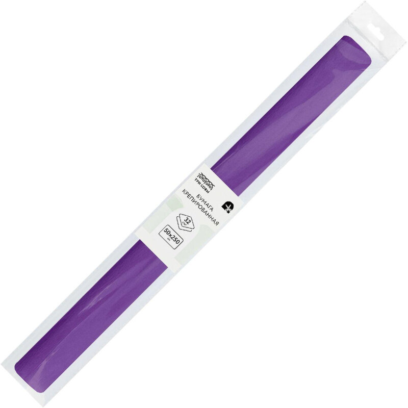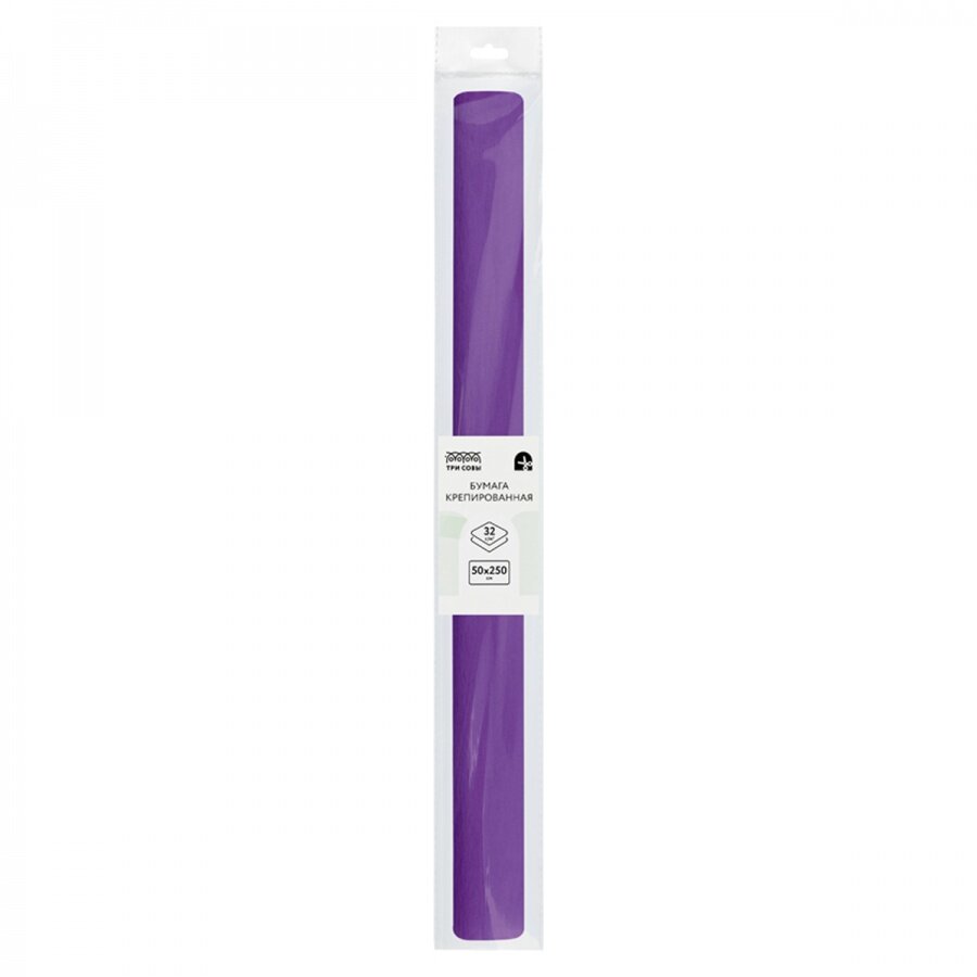 Бумага цветная крепированная Три Совы, 50x250см, 32 г/кв. м, фиолетовая, в рулоне (CR_43971), 10шт.