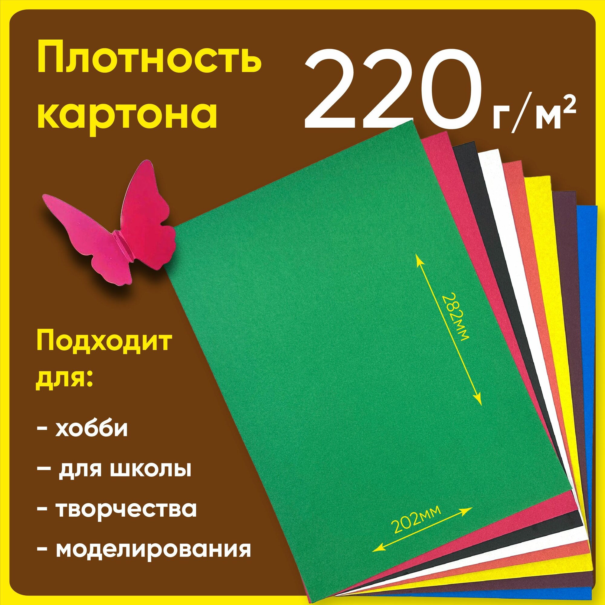Цветной картон А4 для школы и творчества, 220 г/м2, 8 цветов, 24 листа