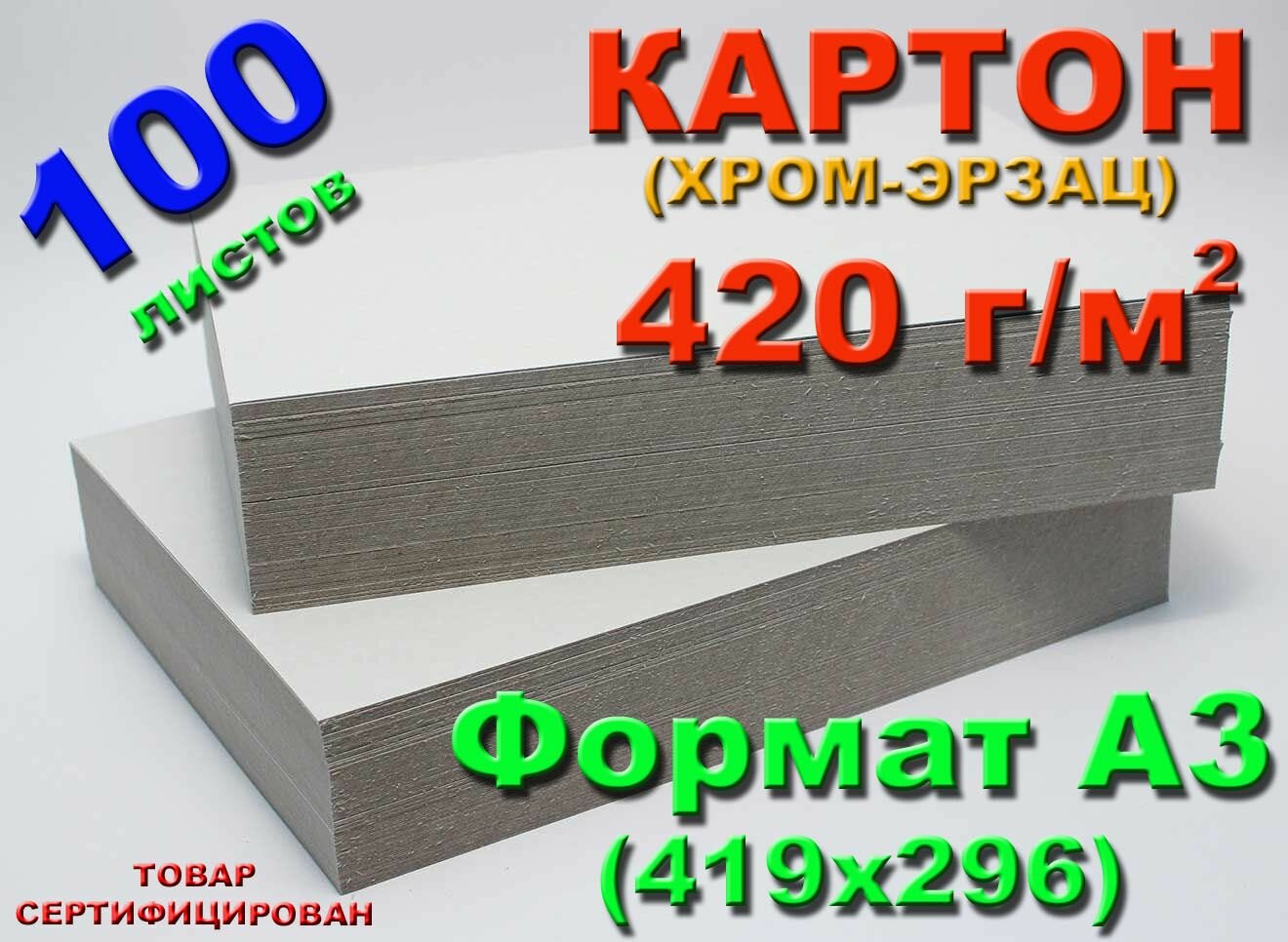 (100 л.) Картон, хром-эрзац, плотный немелованный, формат А3, плотность 420 г/м2 интересное: