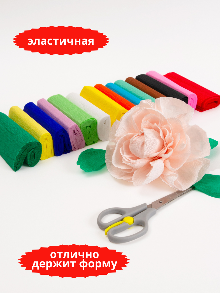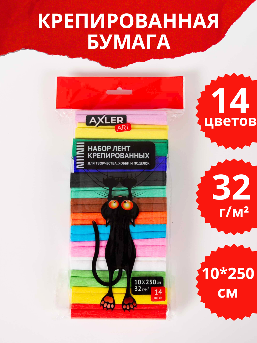 Бумага гофрированная, крепированная, креповая цветная Axler Art, набор 14 шт, для поделок и творчества интересное: