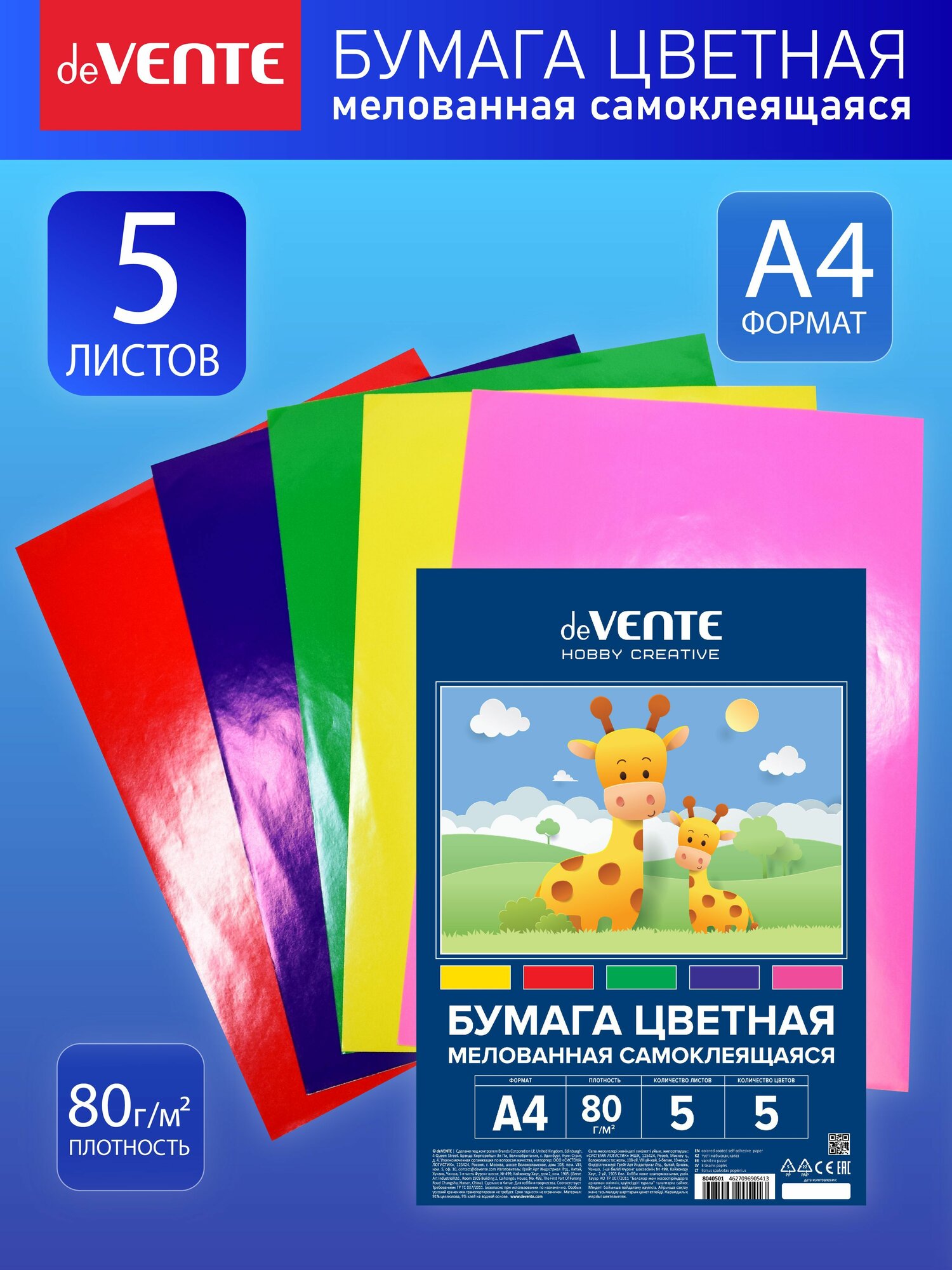 Ниже Вы можете прочитать отзывы на Бумага цветная мелованная самоклеящаяся для поделок и творчества A4 80 г/м , A4 5 цветов, 5 листов, ознакомится с подробными характеристиками, посмотреть интересные обзоры и фотографии на Бумага цветная мелованная самоклеящаяся для поделок и творчества A4 80 г/м , A4 5 цветов, 5 листов.
