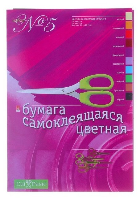 Набор цветной бумаги, HOBBY TIME № 5, А4 (205 х 295 мм), 10 листов, 10 цветов , "самоклеящаяся", Арт. 11-410-34 интересное: