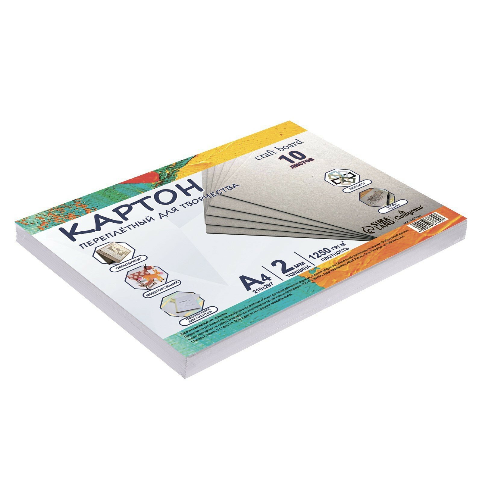 Картон переплетный А4 (210 х 297 мм), набор 10 листов, 2.0 мм, 1250 г/м2, серый, в пакете, Calligrata 9337855 интересное: