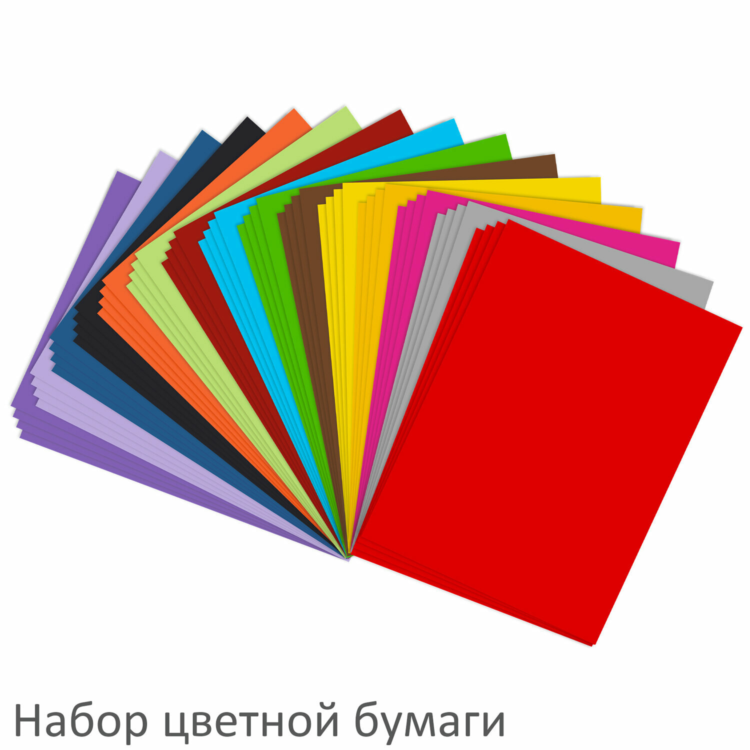 Набор картона и бумаги A4 мелованные (белый 10 л, цветной и бумага по 20 л,10 цветов), BRAUBERG
