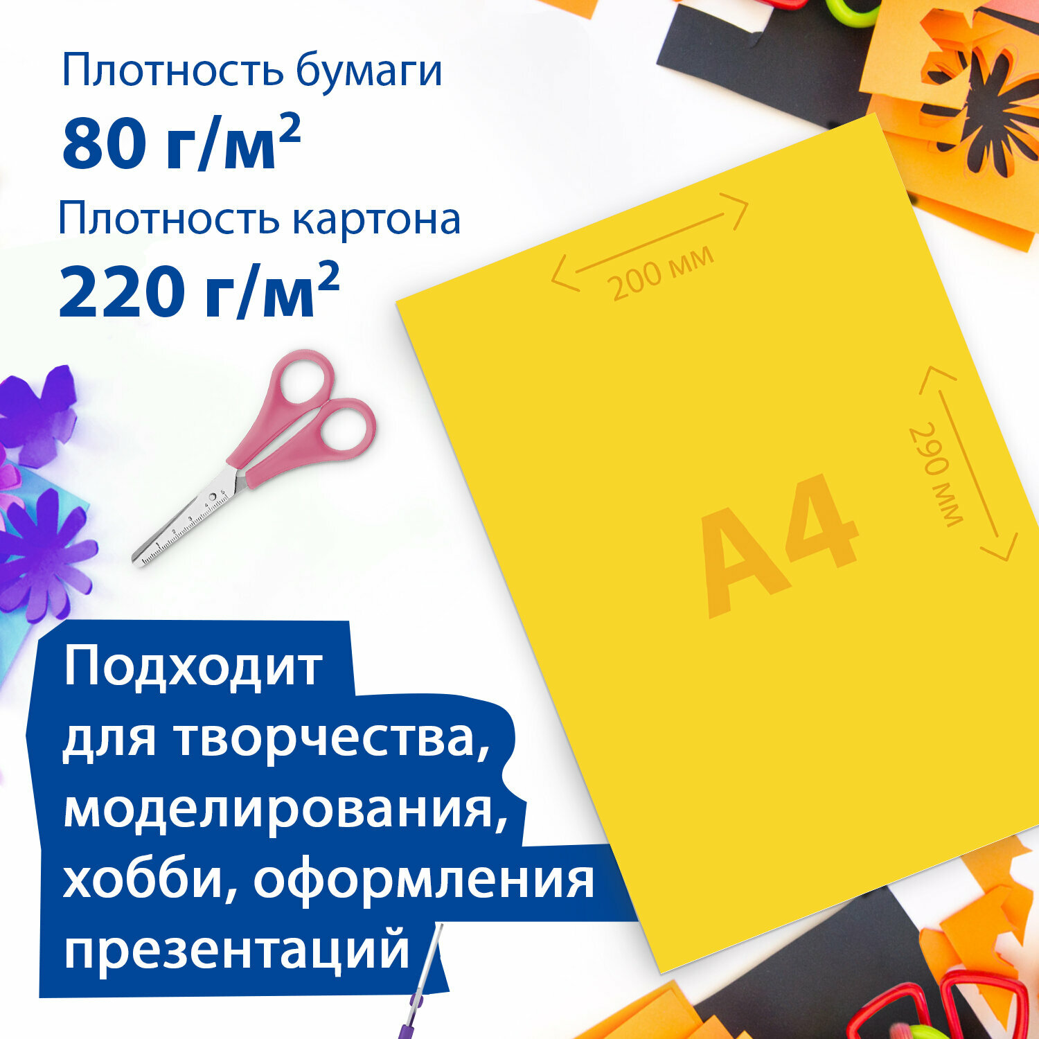 Комплект 5 шт, Набор картона и бумаги A4 мелованные (белый 10 л, цветной и бумага по 20 л,10 цветов), BRAUBERG, 113567