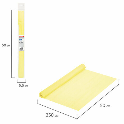 Бумага цветная крепированная Brauberg, 50x250см, желтая, 32 г/кв. м, плотная, растяжение до 45%, в рулоне (126529), 10шт.