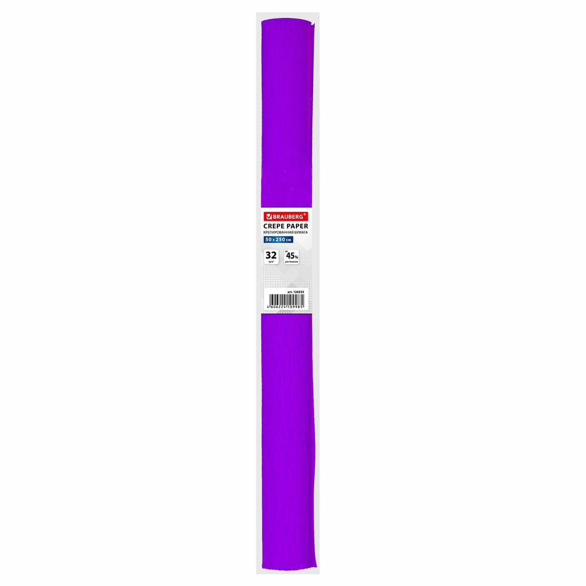 Купить Бумага цветная крепированная Brauberg, 50x250см, фиолетовая, 32 г/кв. м, плотная, растяжение до 45%, в рулоне (126533), 10шт.