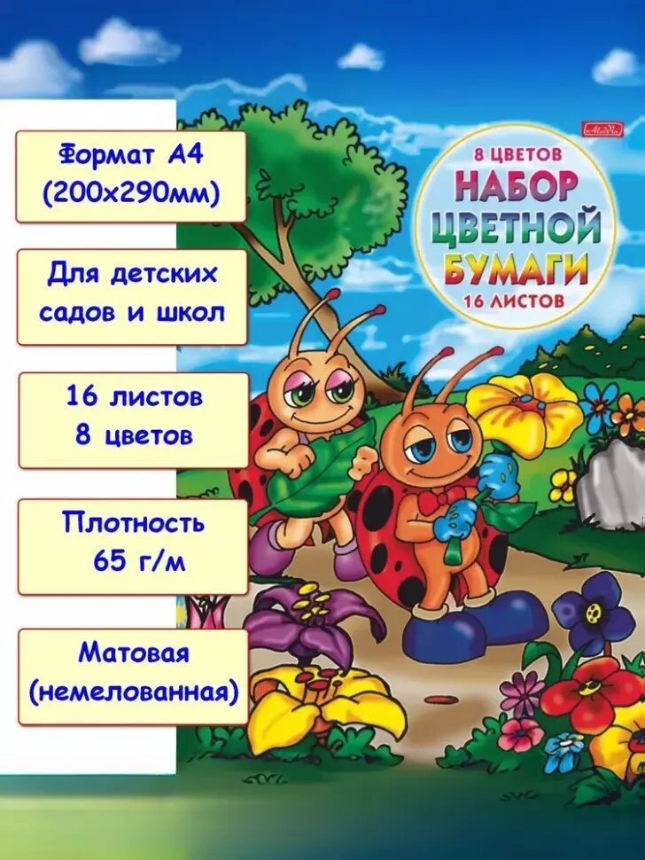 Бумага цветная А4 матовая, немелованная. 8 цветов. 16 листов (Aladdin) интересное: