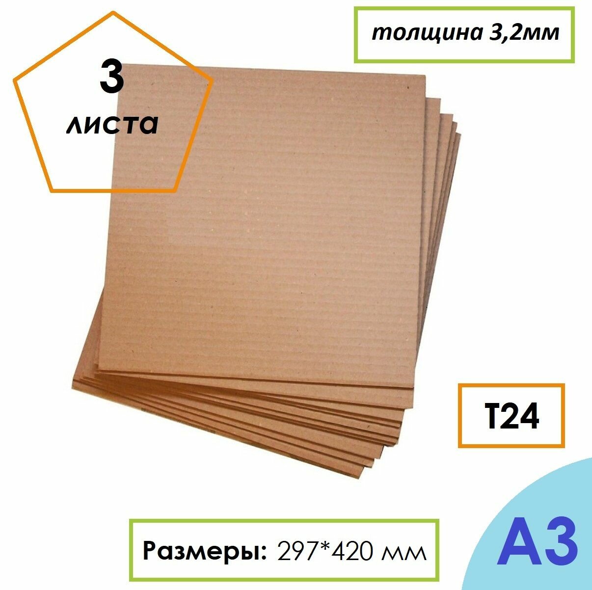 Купить Гофрокартон листовой Т24, формат А3, 297Х420мм, 3 листа