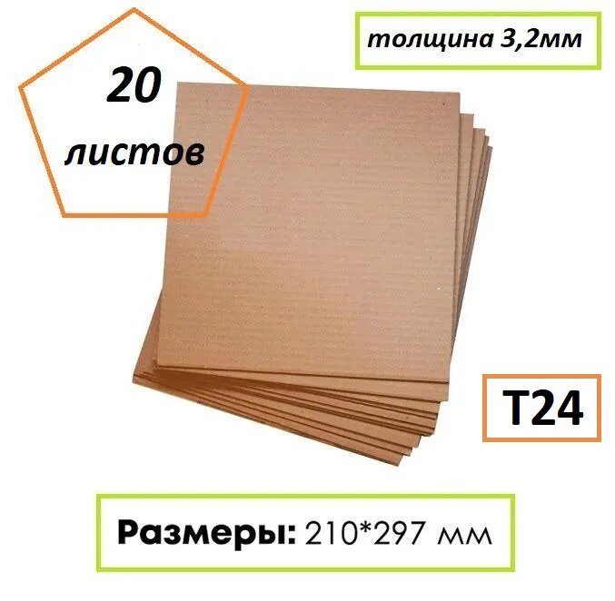 Гофрокартон листовой Т24, формат А3, 297Х420мм, 20 листов