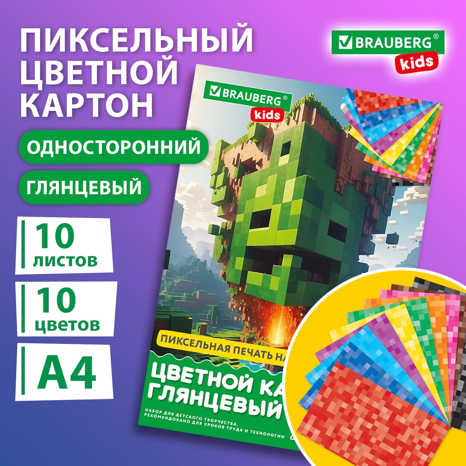 Цветной картон для школы набор А4 глянцевый, 10 листов 10 цветов в папке, канцелярия для школьников, творчества, скрапбукинга, Brauberg Kids, 116416 интересное: