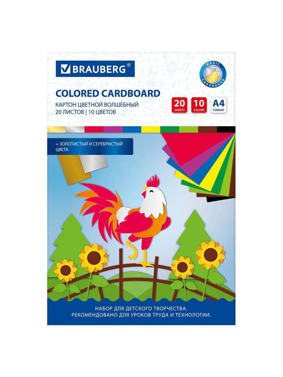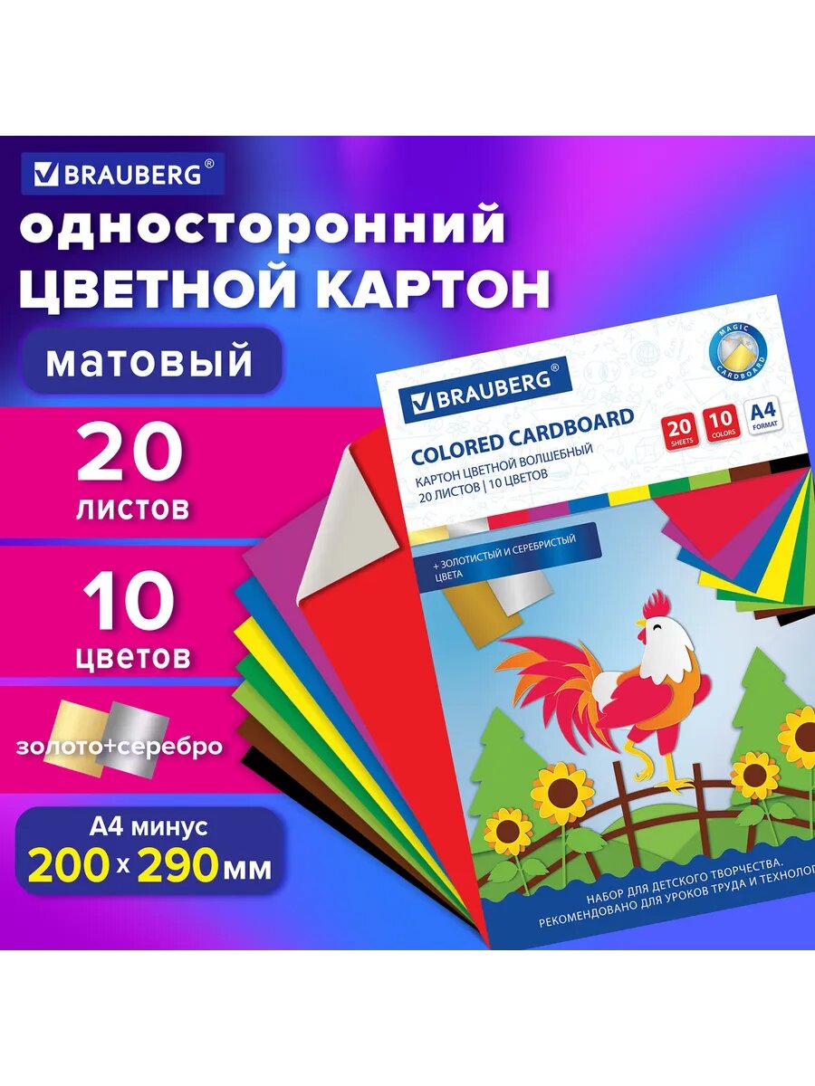 Купить 6шт Картон цветной А4 немелованный волшебный, 20 листов, 10