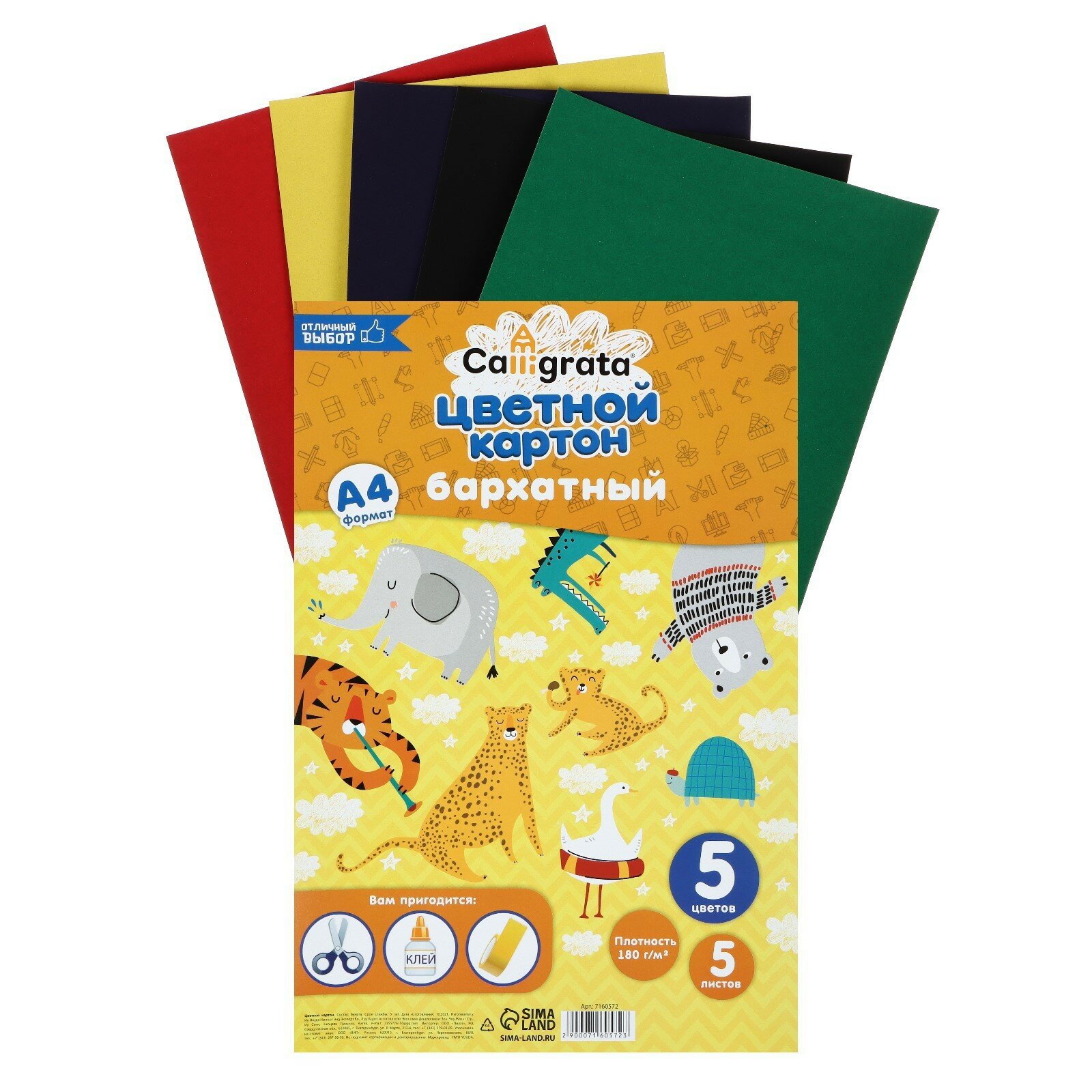 Картон бархатный А4, 5 листов, 5 цветов, 180 г/м2, тип скрепления: в папке интересное: