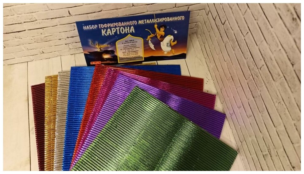 Картон цветной А4 гофрированный металлизированный. 8 цветов. 8 листов (Aladdin) интересное: