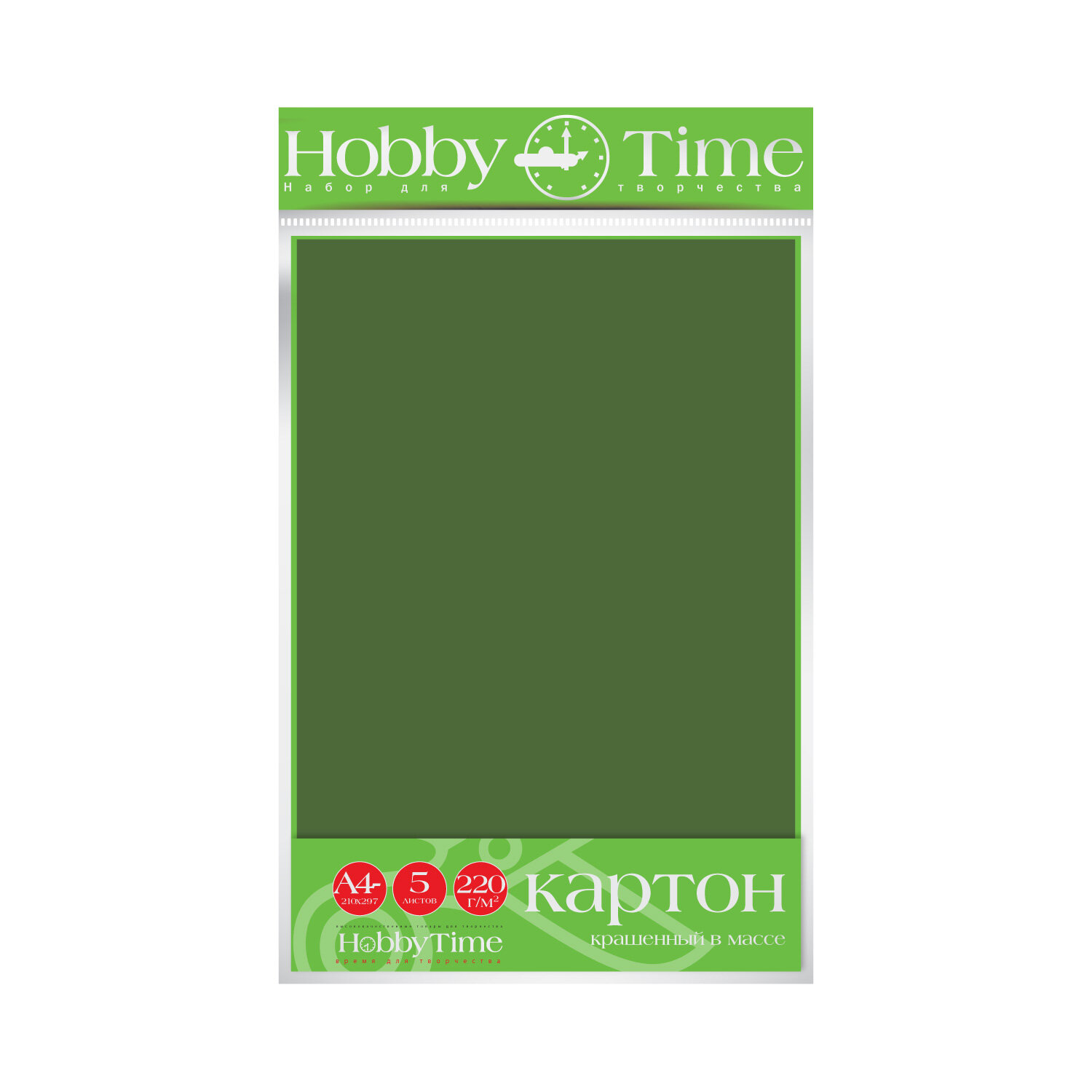Купить Набор цветного картона HOBBY TIME, А4 (222 х 352 мм), 5 листов, крашенный в массе, темно-зеленый, Арт : 2-063/06