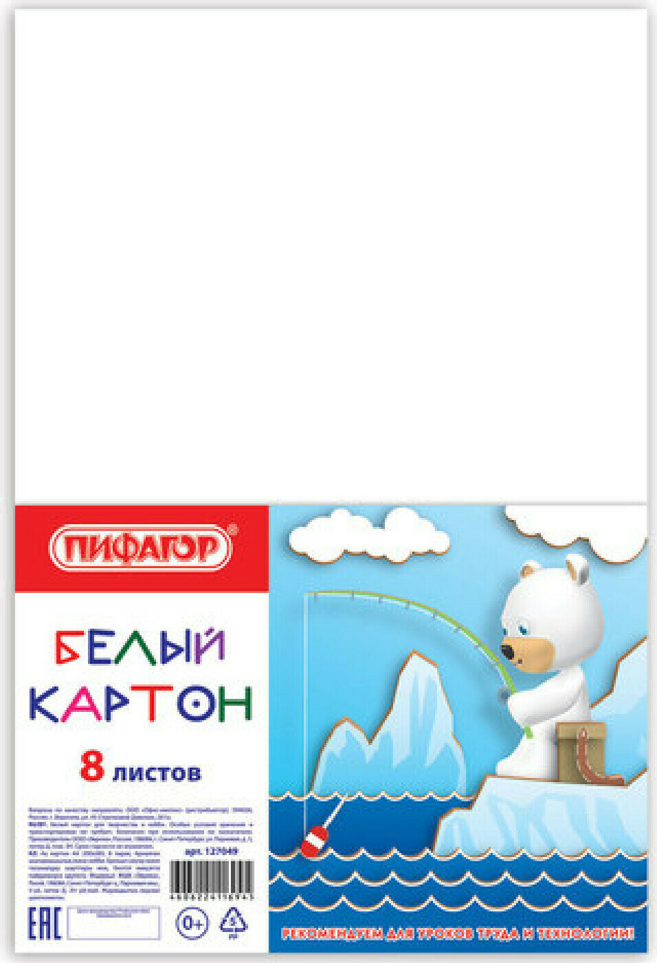 Купить Картон Картон белый А4 немелованный (матовый), 5 упаковок по 8 листов, пифагор, 200х283 мм, 127049