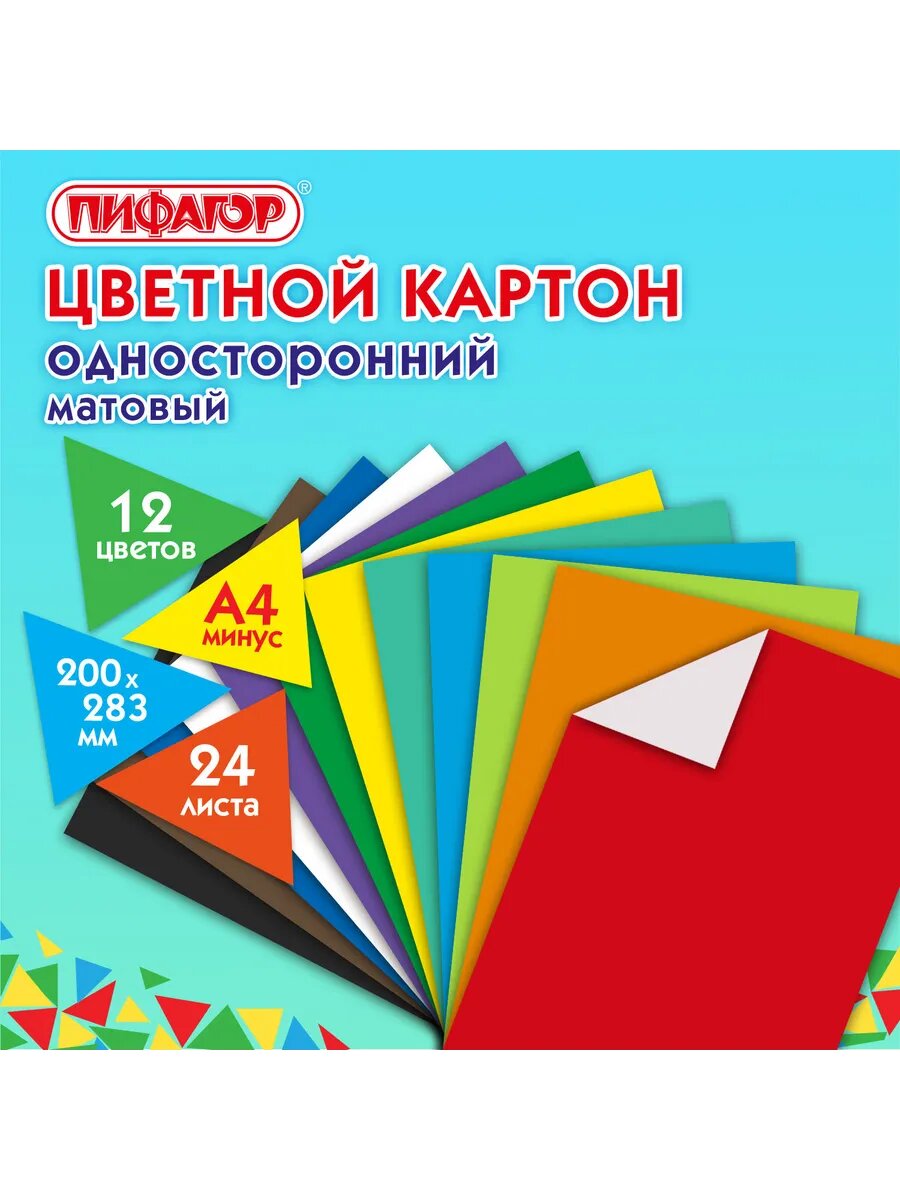 Купить Картон цветной А4 немелованный (матовый), 24 листа 12 цвето