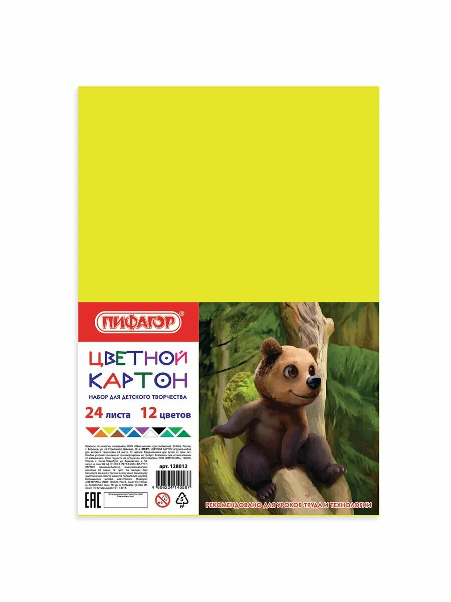 Картон цветной А4 немелованный (матовый), 24 листа 12 цвето интересное: