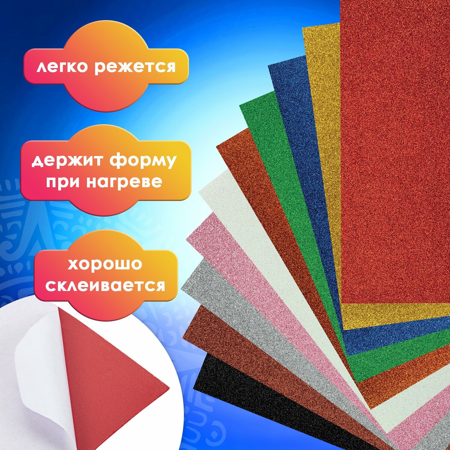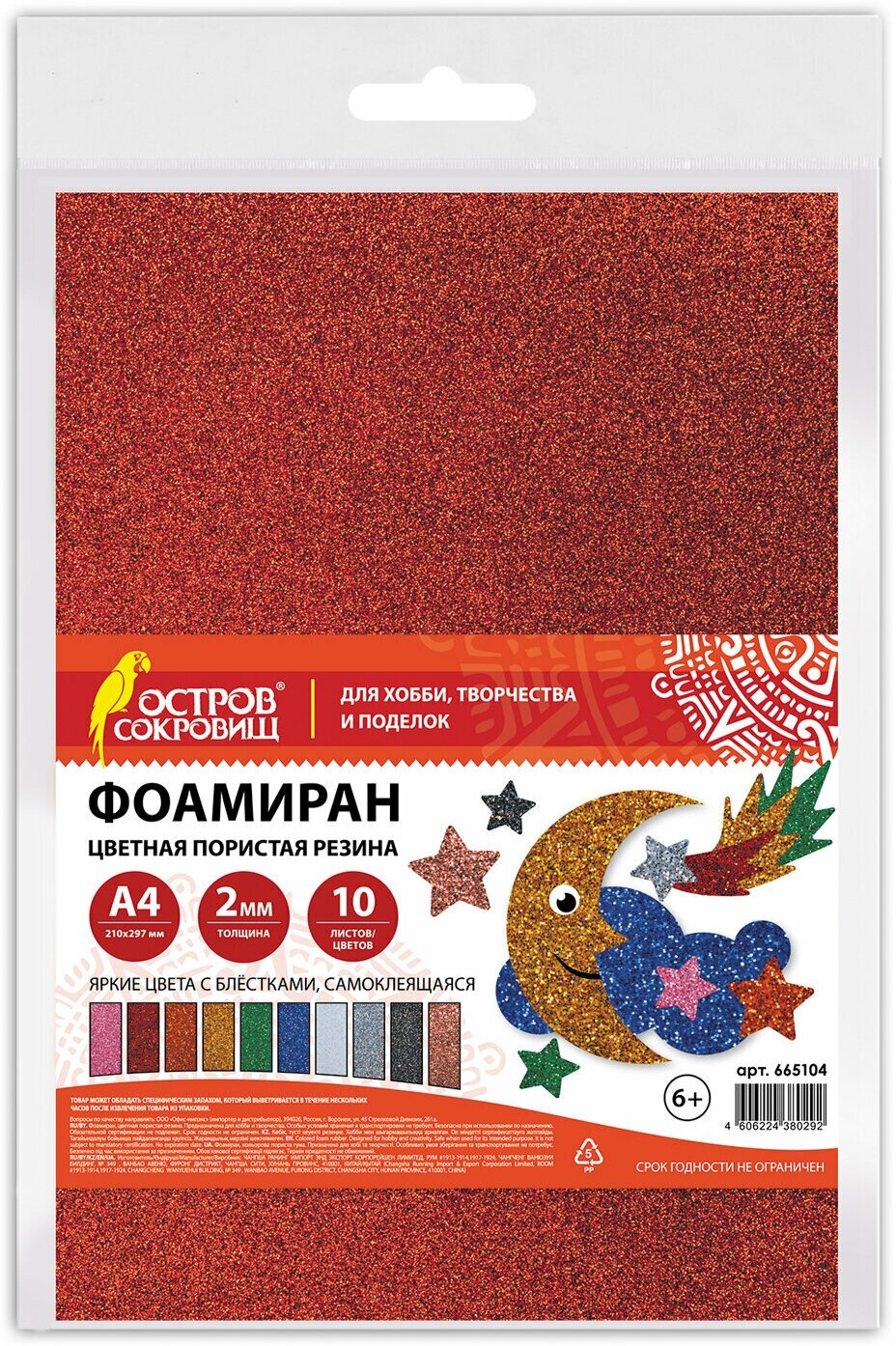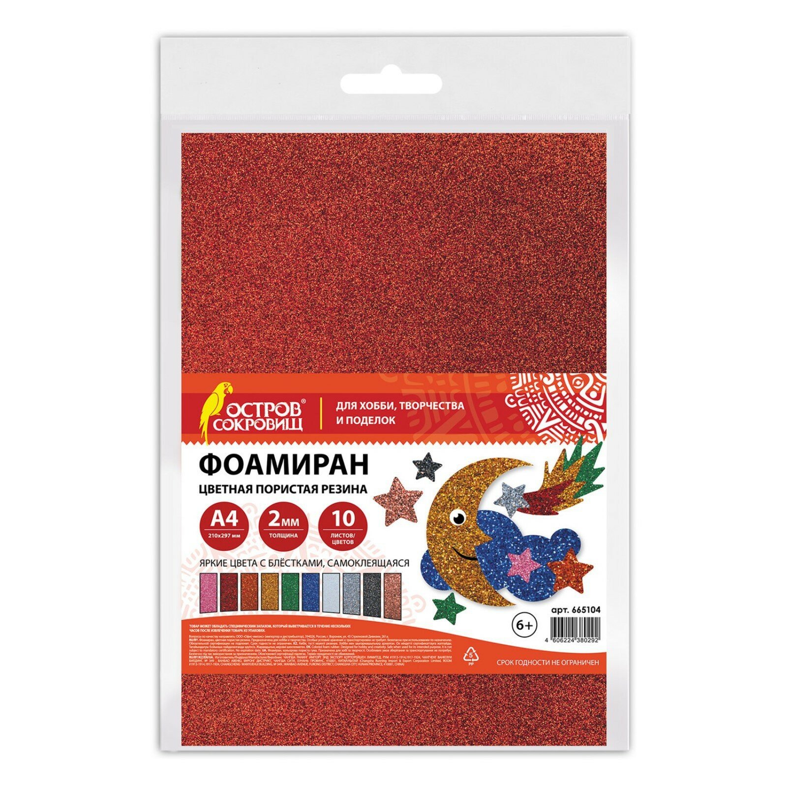 Купить Пористая резина/фоамиран А4, 2 мм, остров сокровищ, 10 листов, 10 цветов, яркие цвета, блестки, самоклеящаяся, 665104