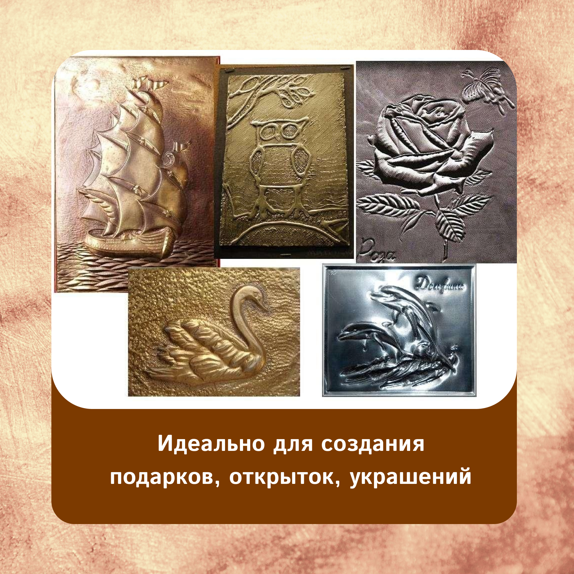 Фольга для чеканки A4 deVente 190 г/м, 3 л, в картонной папке, бронзовая интересное: