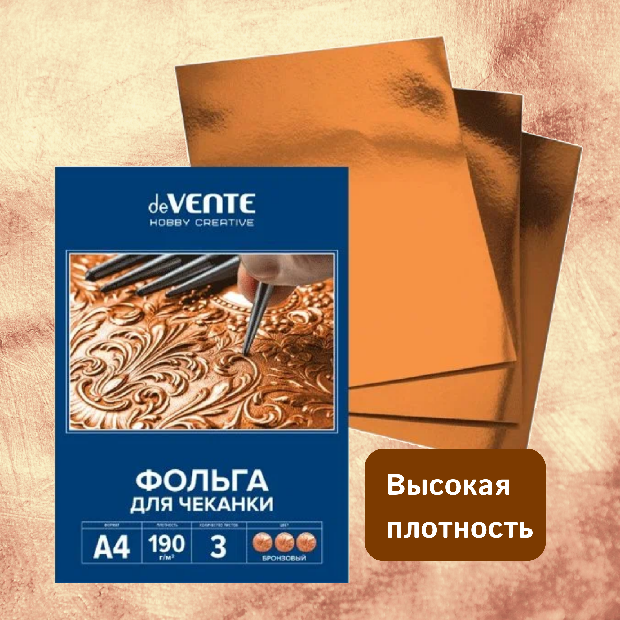 Ниже Вы можете прочитать отзывы на Фольга для чеканки A4 deVente 190 г/м, 3 л, в картонной папке, бронзовая, ознакомится с подробными характеристиками, посмотреть интересные обзоры и фотографии на Фольга для чеканки A4 deVente 190 г/м, 3 л, в картонной папке, бронзовая.