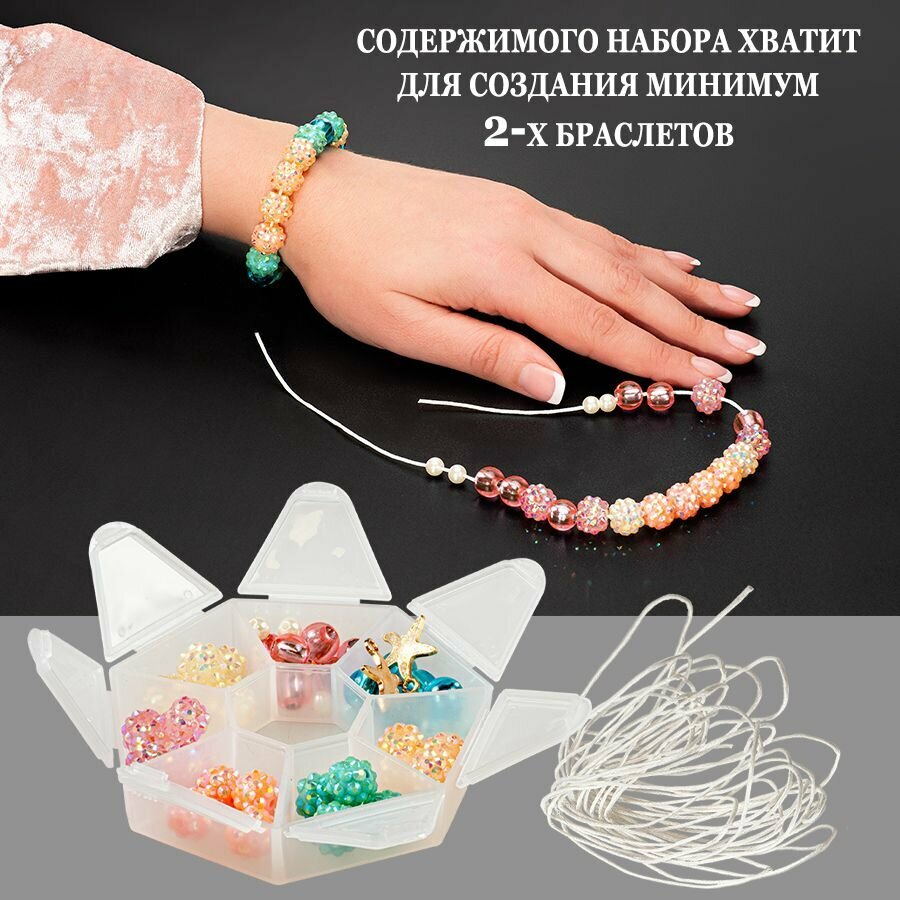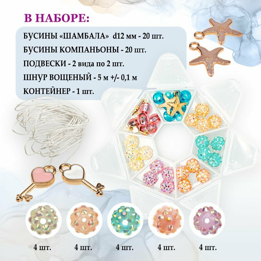 Набор для плетения браслетов и создания украшений "Блеск софитов", 40 бусин / шамбала