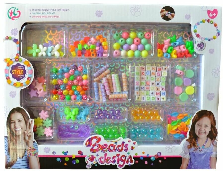 Набор бусинок для создания украшений для девочки, бусины в ассортименте 16 видов, леска в комплекте интересное: