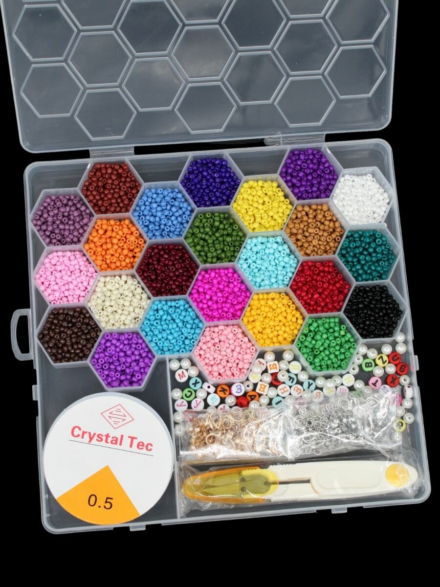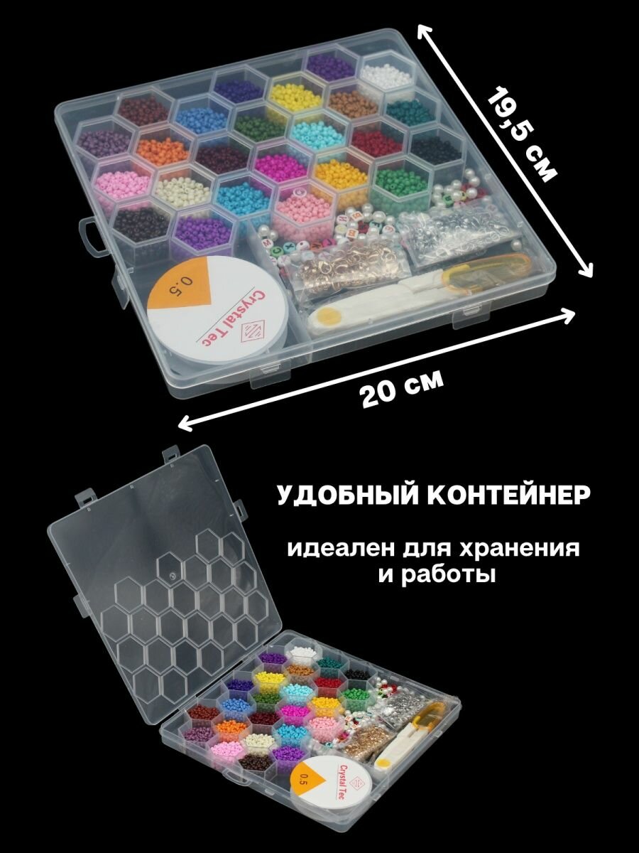 Большой набор 28 цветов бисера для плетения с силиконовой леской 0,8 мм и ножницами, размер органайзера 22,5 х 13,5 см BSD03/201288129