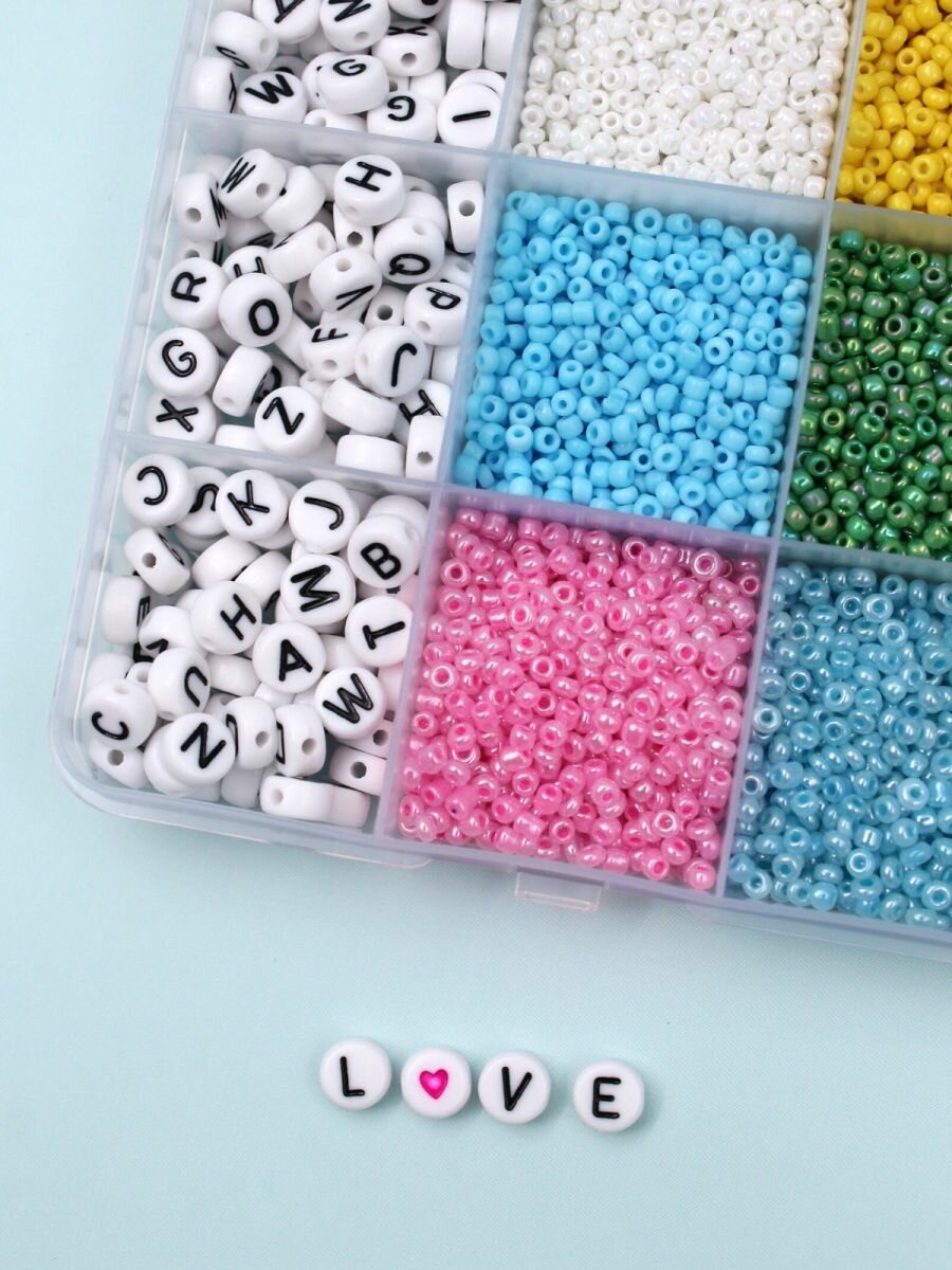 Большой набор 28 цветов бисера для плетения с силиконовой леской 0,8 мм и ножницами, размер органайзера 22,5 х 13,5 см BSD03/201288129