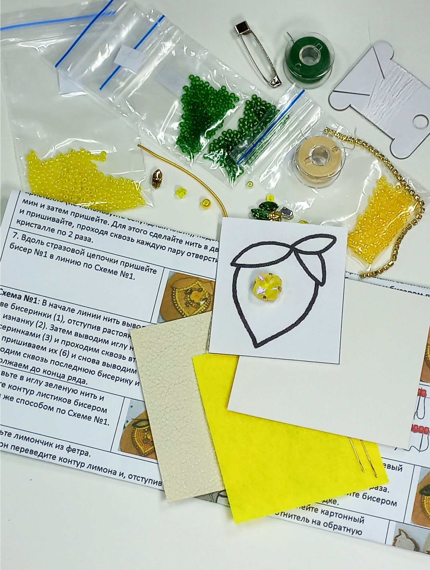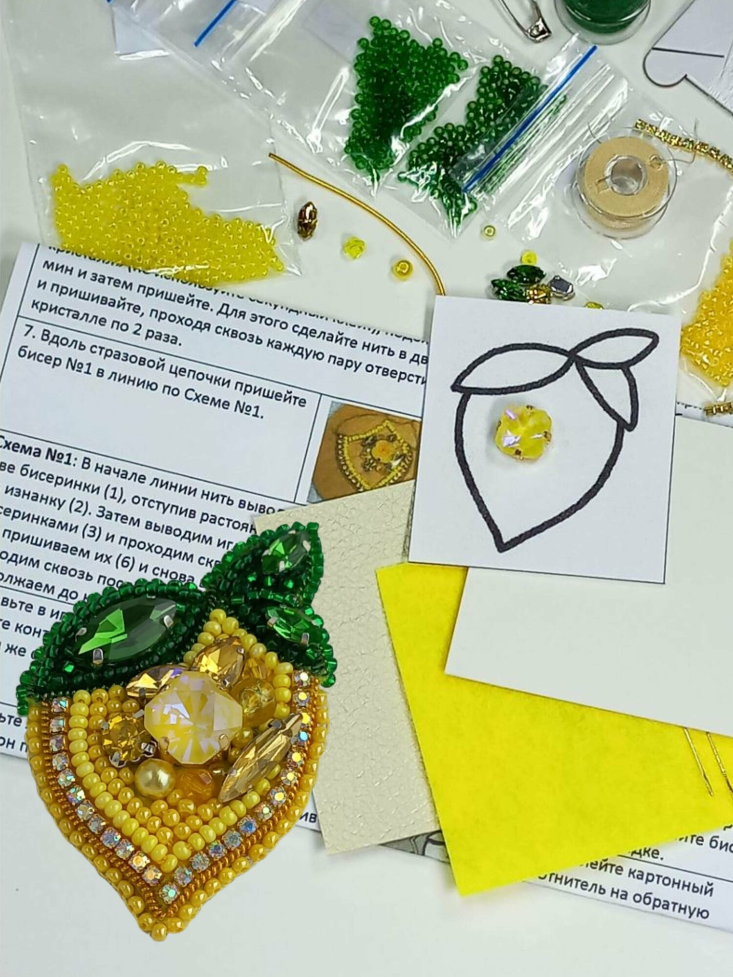 Купить Набор Брошь Лимон от GalaBrooch для вышивания бисером и стразами