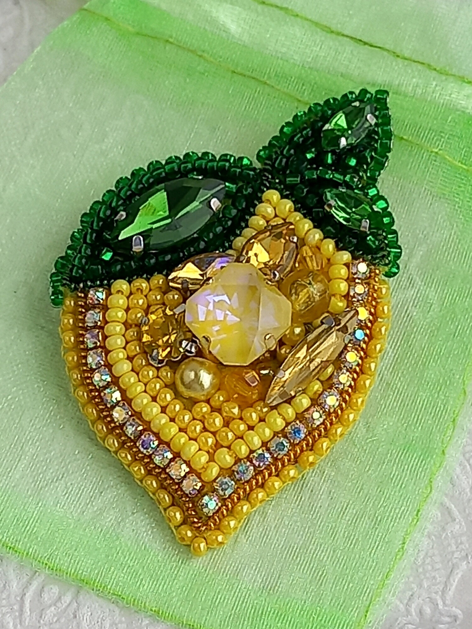 Набор Брошь Лимон от GalaBrooch для вышивания бисером и стразами интересное: