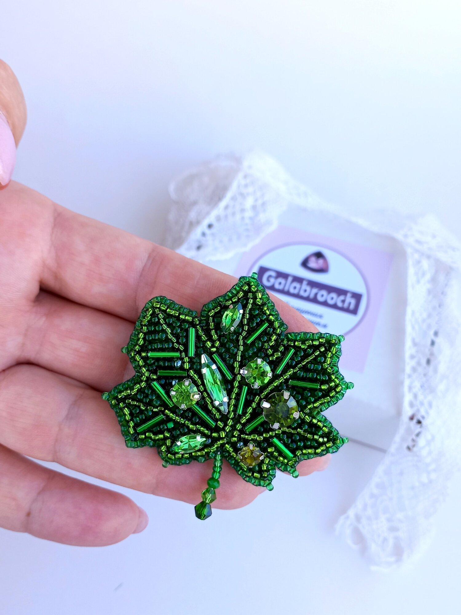 Набор для вышивания бисером брошь Лист зеленый от GalaBrooch интересное: