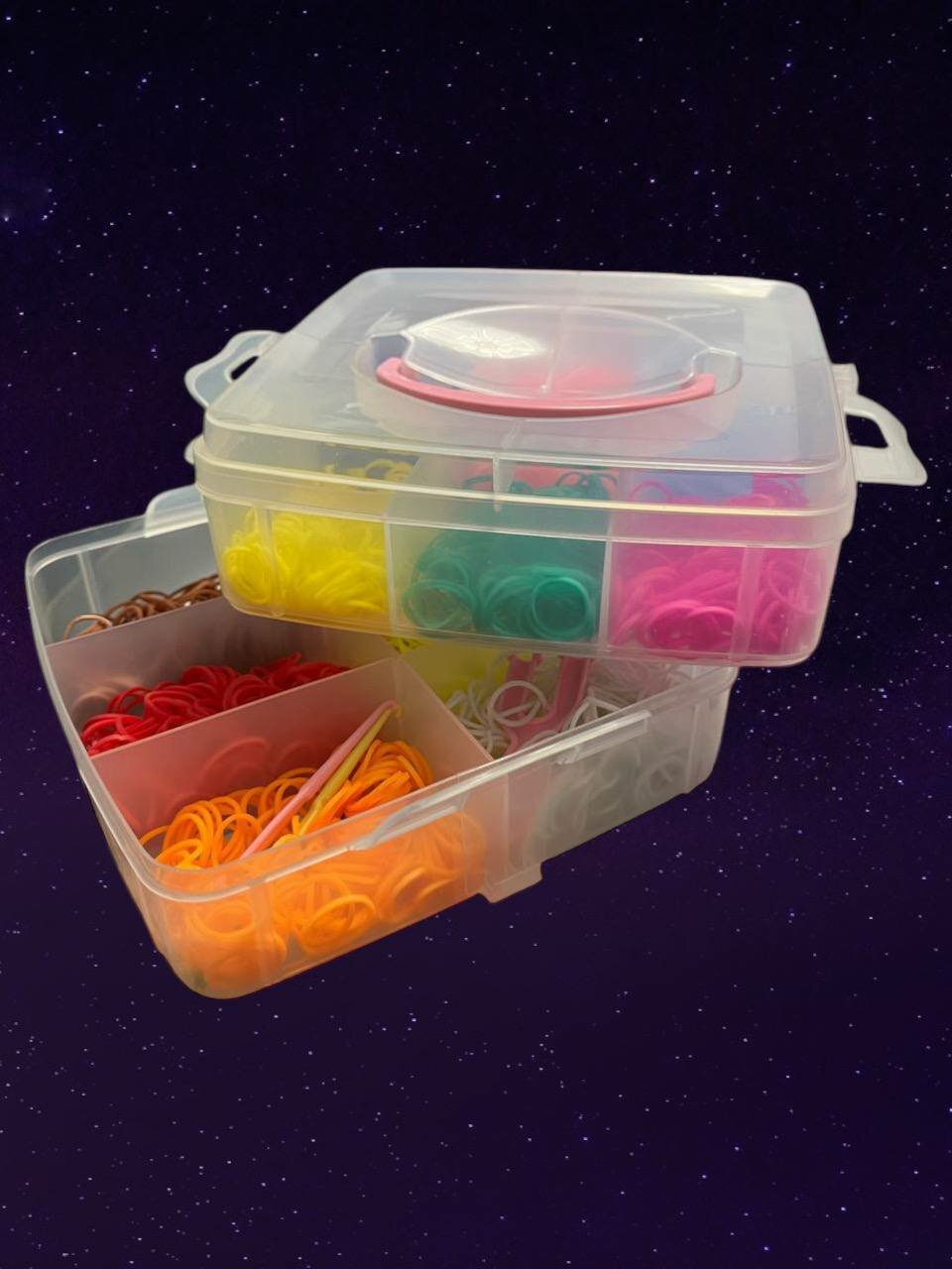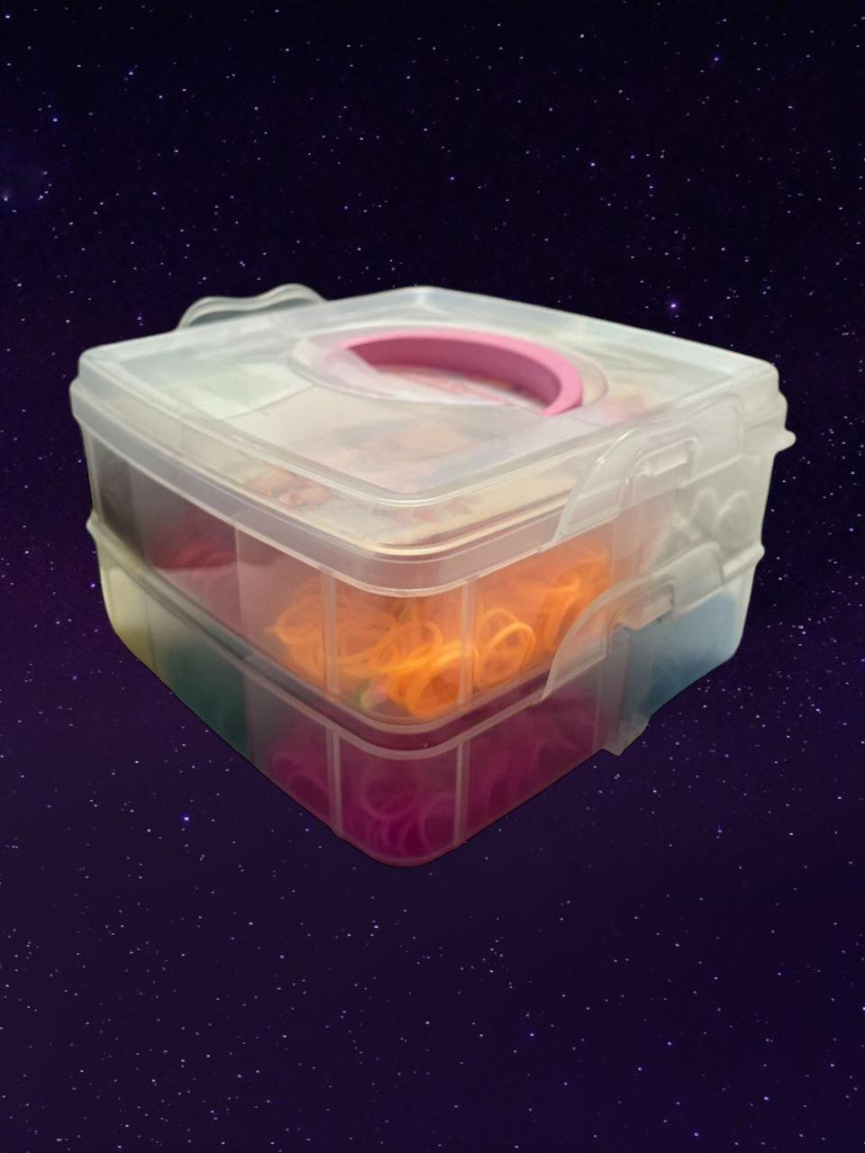 Купить Большой набор резинок для плетения, 2400 шт бокс 2 яруса квадратный