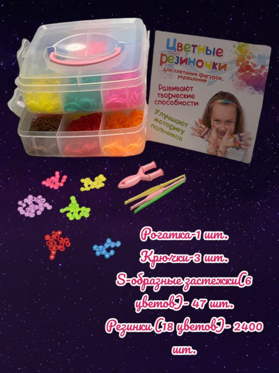 Большой набор резинок для плетения, 2400 шт бокс 2 яруса квадратный интересное: