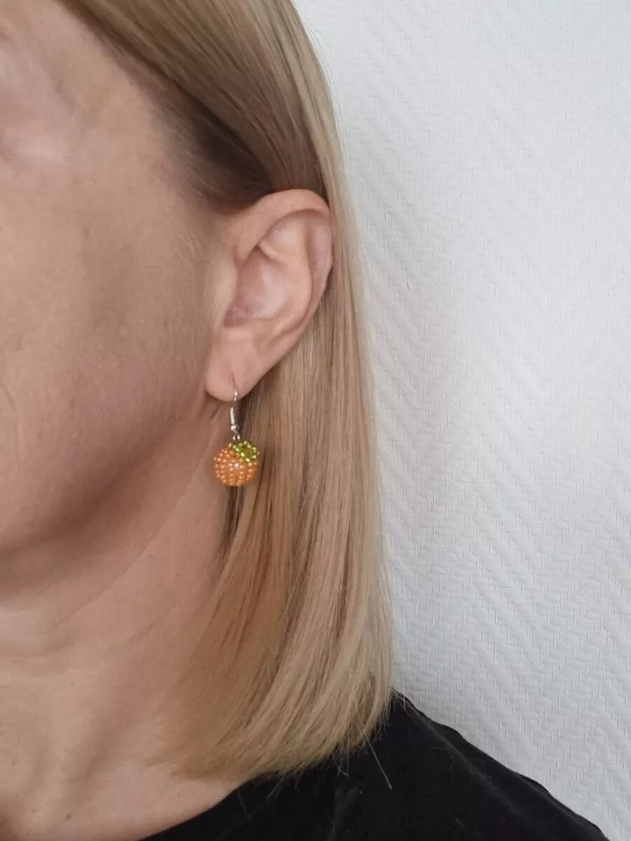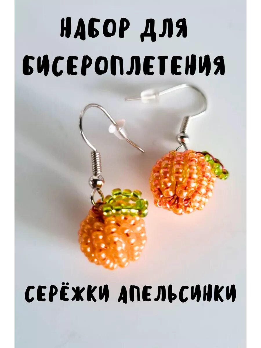 Набор для бисероплетения "Сережки-мандаринки", оранжевый/зеленый, перламутровый интересное: